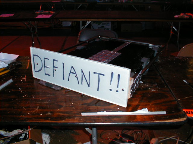 Defiant's new self-promotional front end. Ziggo took this off too, along with the full front 1/3 of the robot.. ouch!