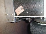 Christian Carlberg and Clint Lynch's robot KneeBreaker. Those are the holes that SOS put in it's Carbon Fibre panel. The one from the first match was covered up with a band-aid.