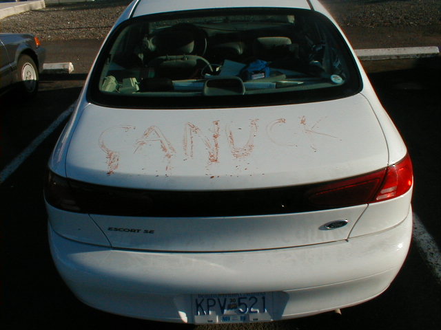 Breakfast stop at MacDonalds led to some creative writing with the hotsauce. CANUCK!
